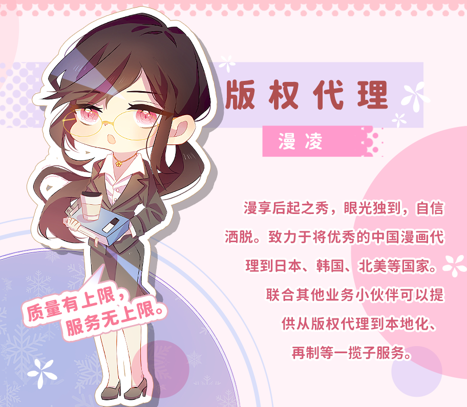 91动漫于2017年成立于北京,现已在香港、成都、沈阳三地设有子公司,业务涉及动漫本地化、动漫版权代理、动漫再制、原创动漫创作等多个领域。 我们的理念:择一事终一生,91动漫希望做动漫行业的匠人,希望为每个用户提供极致的服务和作品。